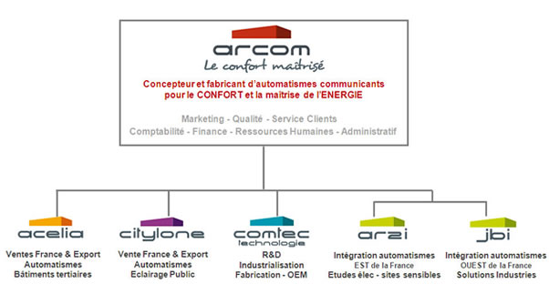 ARCOM s'impose aujourd’hui comme un nouvel acteur majeur sur le marché des automatismes INDOOR (systèmes de régulation multi-métiers - éclairage & CVC) et OUTDOOR (systèmes de régulation pour l'éclairage public).